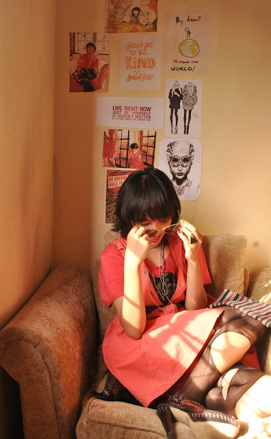 Top as Dress and Ring : KoolaStuffa, Pink Vest : Unbranded, Necklace : Pearl DIY, Belt : Unbranded, Stocking : Sox Gallery, Shoes : Charles and Keith, Cluth Bag : From GogirlMagz, Round Glasses : My Dad's